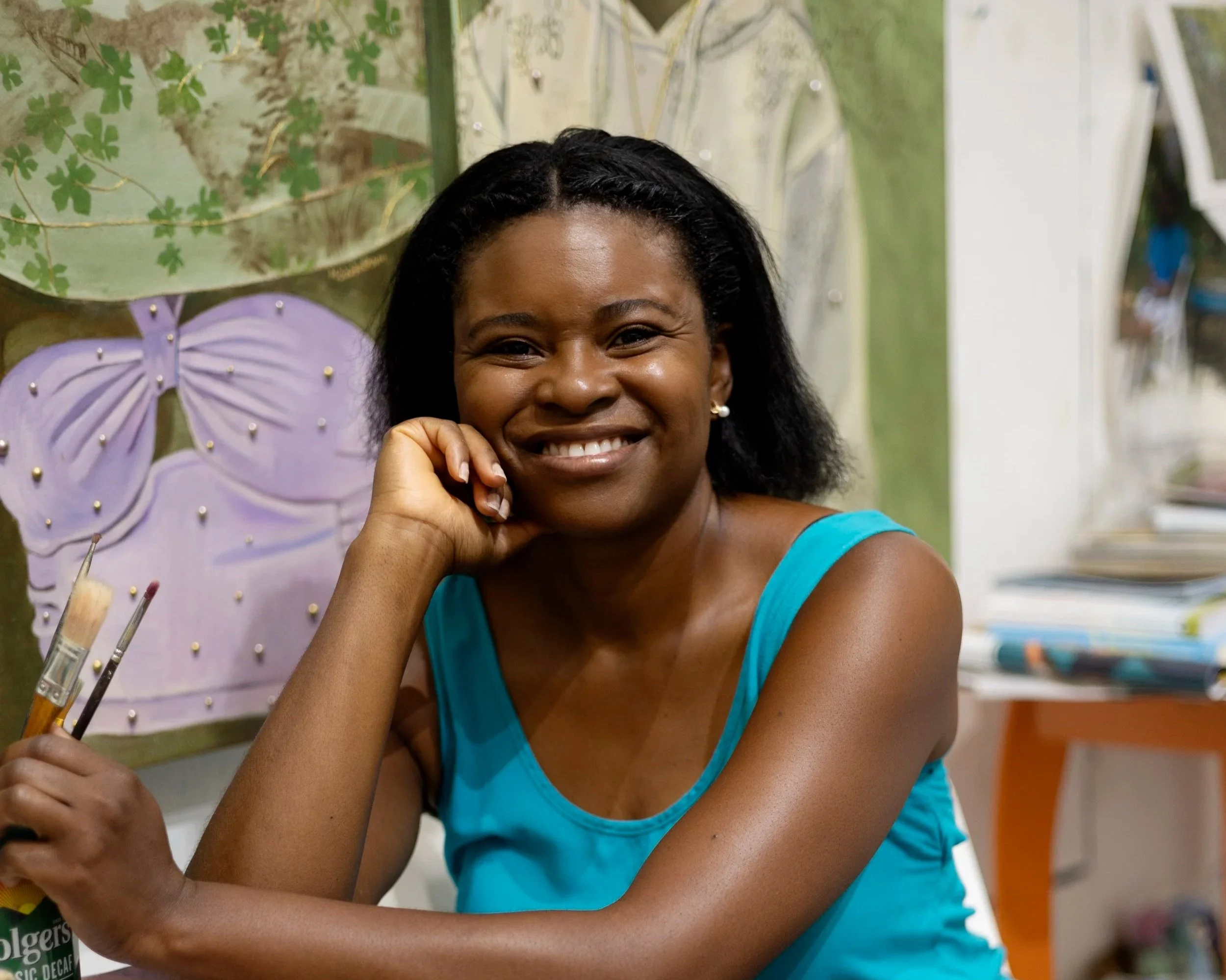 Alicia Brown’s art was recently featured on digital billboards throughout New York to celebrate Woman’s History Month. This was in a collaboration with Outfront Media and Artsy, the leading global online art marketplace. Ms. Brown’s portraits speak to a need for belonging within a society deeply influenced by the distortions of colonial history and class hierarchies.