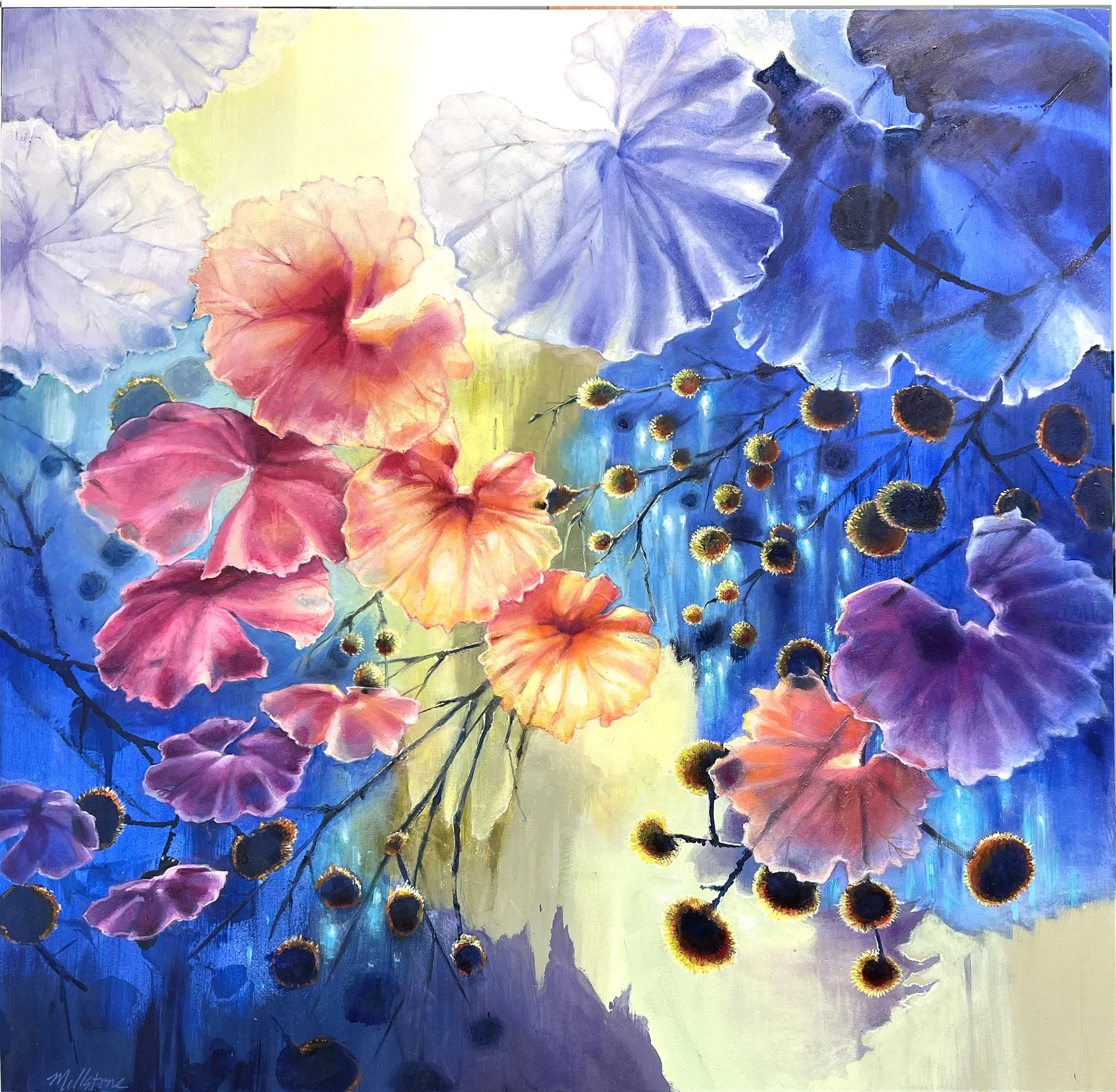 “Painting for me is a challenge, a form of play and a private space to create my visions of natural phenomena, from the tiniest of insects to the majesty of mountains. A session of painting always leaves my heart and soul satisfied. I feel fortunate to have found the world of colors and shapes at a young age. Life built around beauty and creativity is a blessed one.” Madelaine Ginsberg is an award-winning abstract painter as well as a romance novelist. She has worked in art therapy, graphic design, fashion illustration, museum leadership and art education and has been involved in many prestigious art organizations. Her paintings hang in private, corporate and museum collections throughout the country.